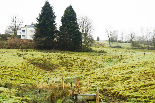 The project responds to the site’s slope, solar orientation and the presence of radon in the soil by lifting the building. A historic curved route shapes its morphology, while streams, nature and existing gardens are preserved. Increased density counteracts isolation, and new connections integrate the proposal into the existing built environment.