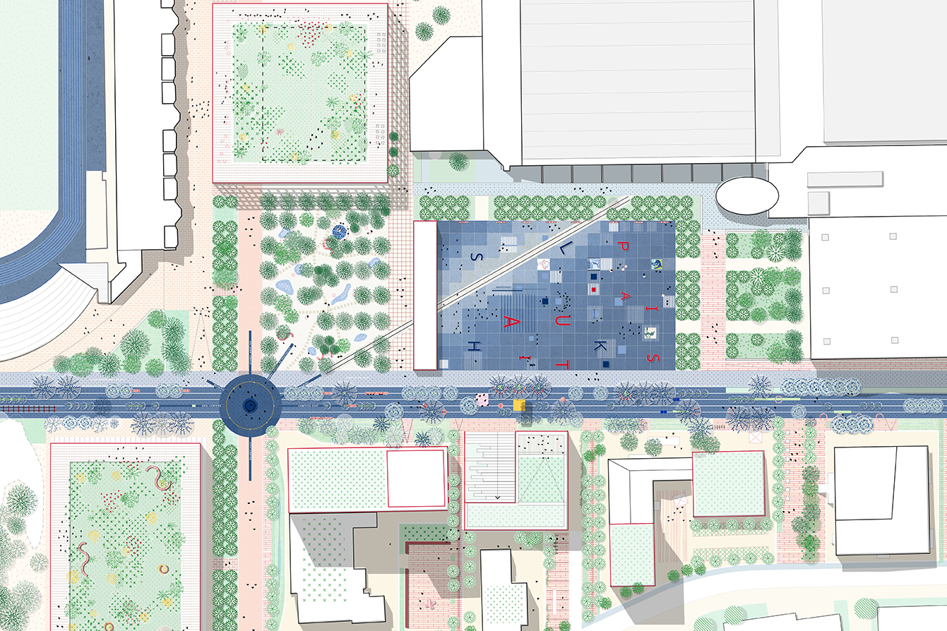 The project seeks to inform and steer future transformations of the site, moving beyond a mere analysis of changes that have occurred to date. Its underlying premise is the conversion of monofunctional spaces and infrastructures—primarily dedicated to vehicular circulation and parking—into hybrid infrastructures that integrate ecological and social dimensions.