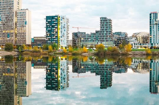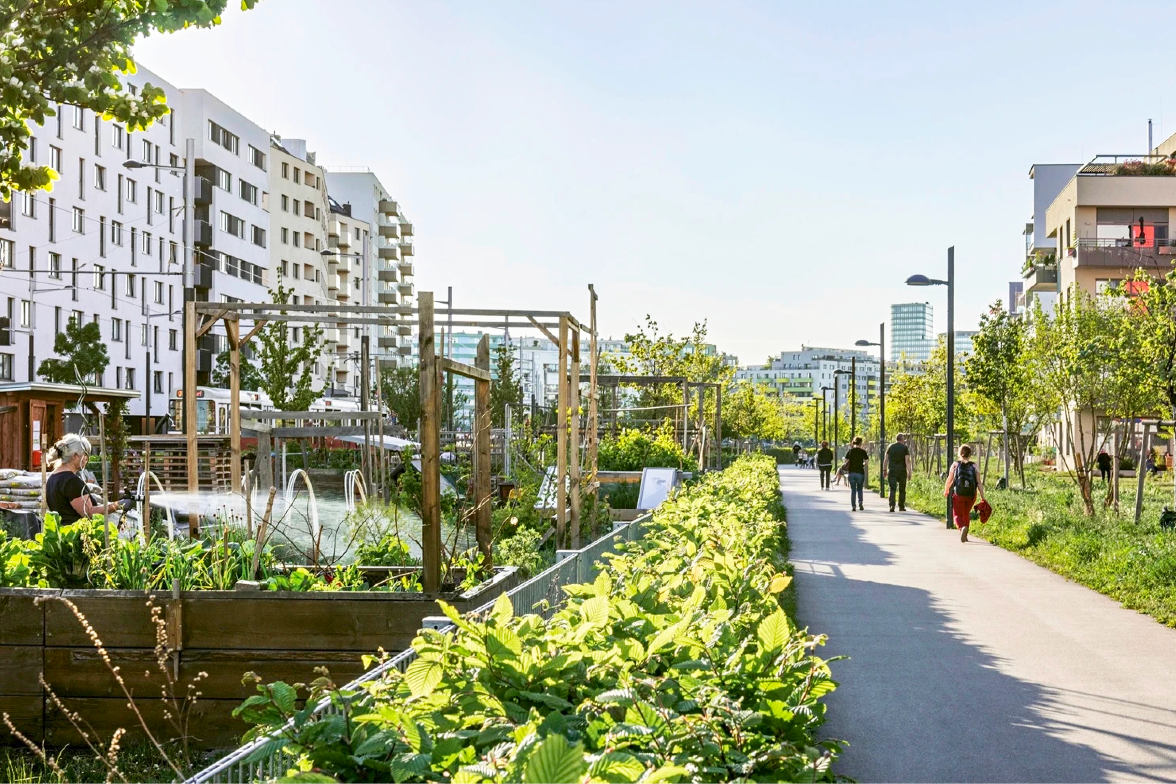 We studied modular urban blocks, garden city, and sponge city concepts, inspired by Vienna’s Seestadt Aspern and Sonnenwendviertel. Seestadt shows integration of water and green spaces, flexible housing, and modular neighborhoods, while Sonnenwendviertel sets benchmarks in density, green infrastructure, sustainable mobility, and social mix. GreenCityPuzzle Regensburg applies these lessons: ecological networks, adaptable neighborhoods, social diversity, flexible use, sustainable mobility, and vibrant public spaces.