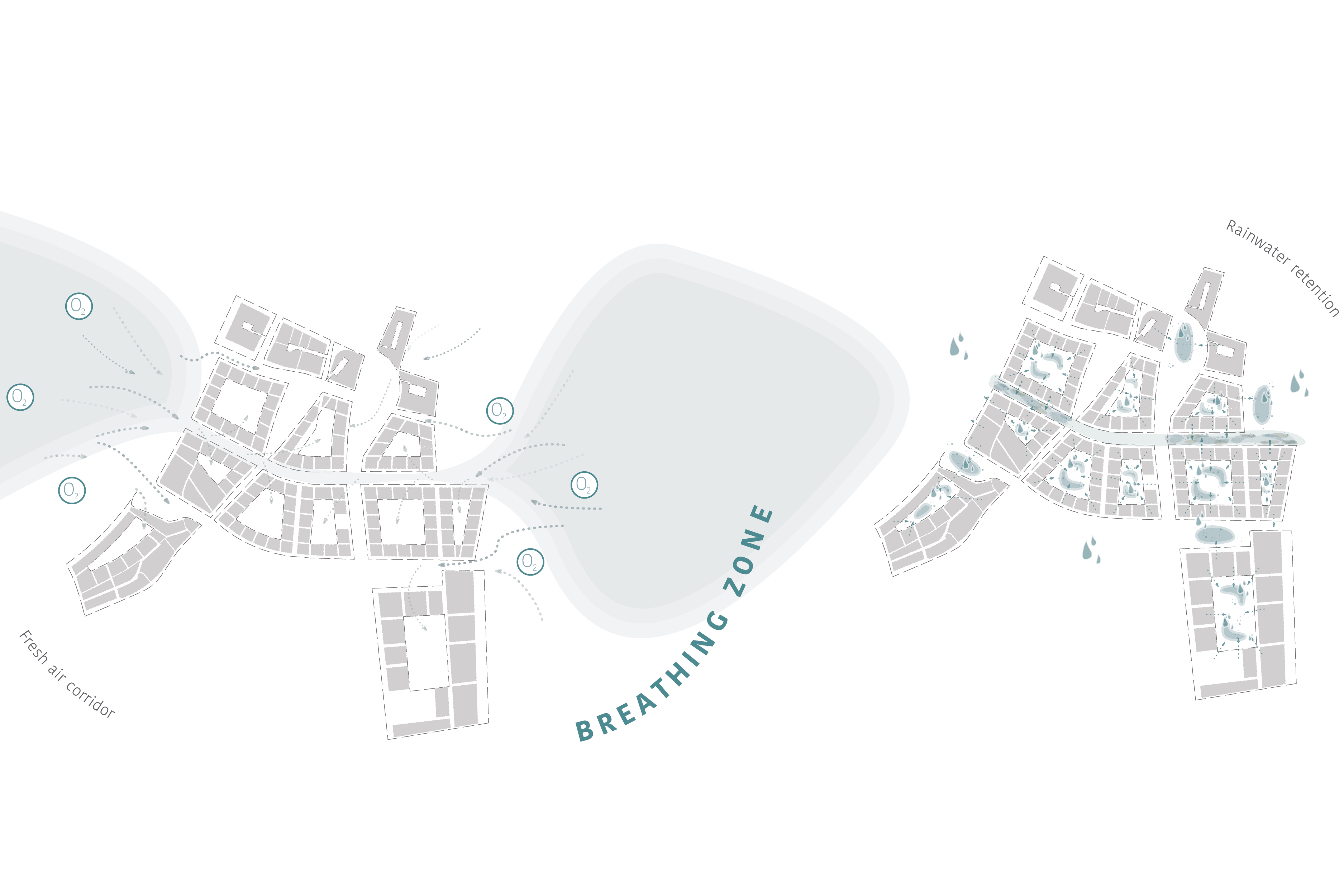 The questions guiding our design emerged directly from the transformation of the site. The challenge was to create urgently needed housing without compromising the landscape qualities and climatic functions of the urban edge. This led to a concept that connects and develops existing green spaces, fresh-air corridors, and settlement structures rather than overwriting them. The modular neighborhood structure, the Forest Belt, and the Breathing Zones respond specifically to the site’s spatial, ecological, and infrastructural requirements, translating the site’s transformation into a flexible, long-term adaptable urban model.