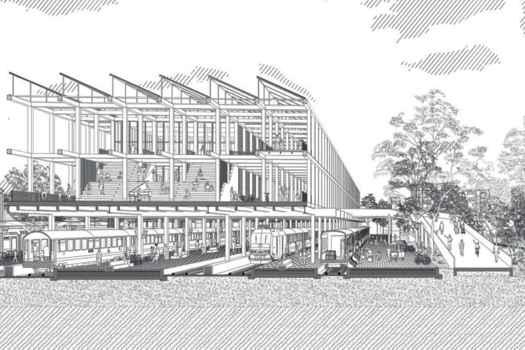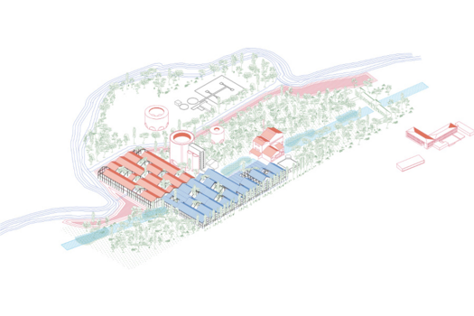 Yes, several of our previous projects have addressed similar issues, especially the challenge of transforming abandoned or underused sites into places that reconnect with a larger territorial scale and accommodate new forms of use for diverse populations. The Brise-Vent du Havre (Léo and Lucas) explored how an overlooked infrastructural fringe could be reimagined as an ecological and social corridor, reconnecting fragmented landscapes while opening new public uses to local communities. The Cherbourg seafront project (Léo, Lucas, Action Coeur de Ville) similarly aimed to weave the city back into its coastal territory by creating accessible, inclusive spaces where different populations such as residents, visitors, and workers could interact with renewed ecological environments. The Paris Bercy train station proposal (Léo and Lucas, Prix Tony Garnier) questioned the future of a major vacant infrastructure at a metropolitan scale, imagining how such a site could host new mobilities, productive programs, and shared public spaces that serve a wide range of users. Jean worked on the Former Mira Lanza project, the rehabilitation of a former industrial site in central Rome, through a careful process of site remediation, valorization of existing industrial heritage, and the integration of social housing as part of the European Housing First program, aimed at addressing the rise of homelessness in European metropolitan areas. Yann worked on the previous Europan session in Bernay, a (multi)site that had a similar scope. The answer was centered around the same principles as the present project. It weaved together new forms of productivity as well as new forms of living through the reactivation of the flax industry in the Risle valley. Similarly, a territorial project in the heart of the Chartreuse aimed for a large-scale ecology of material flows to handle the slow decline of the industries. Radical scenarios were proposed: abandoned sites were deconstructed and reconfigured into a series of structures that were of public usefulness. Across these projects, a common ambition guided our approach: to treat each site not as an isolated object but as a strategic catalyst capable of reconnecting broader ecological and social systems, while offering flexible, inclusive spaces for multiple ways of inhabiting. This perspective strongly inspired the Entre-Lacs project, where we continue to explore how a deserted site can become a regenerative hub for its entire bioregion and for the communities who will inhabit it. Our references are diverse; here are a few that inspired us: