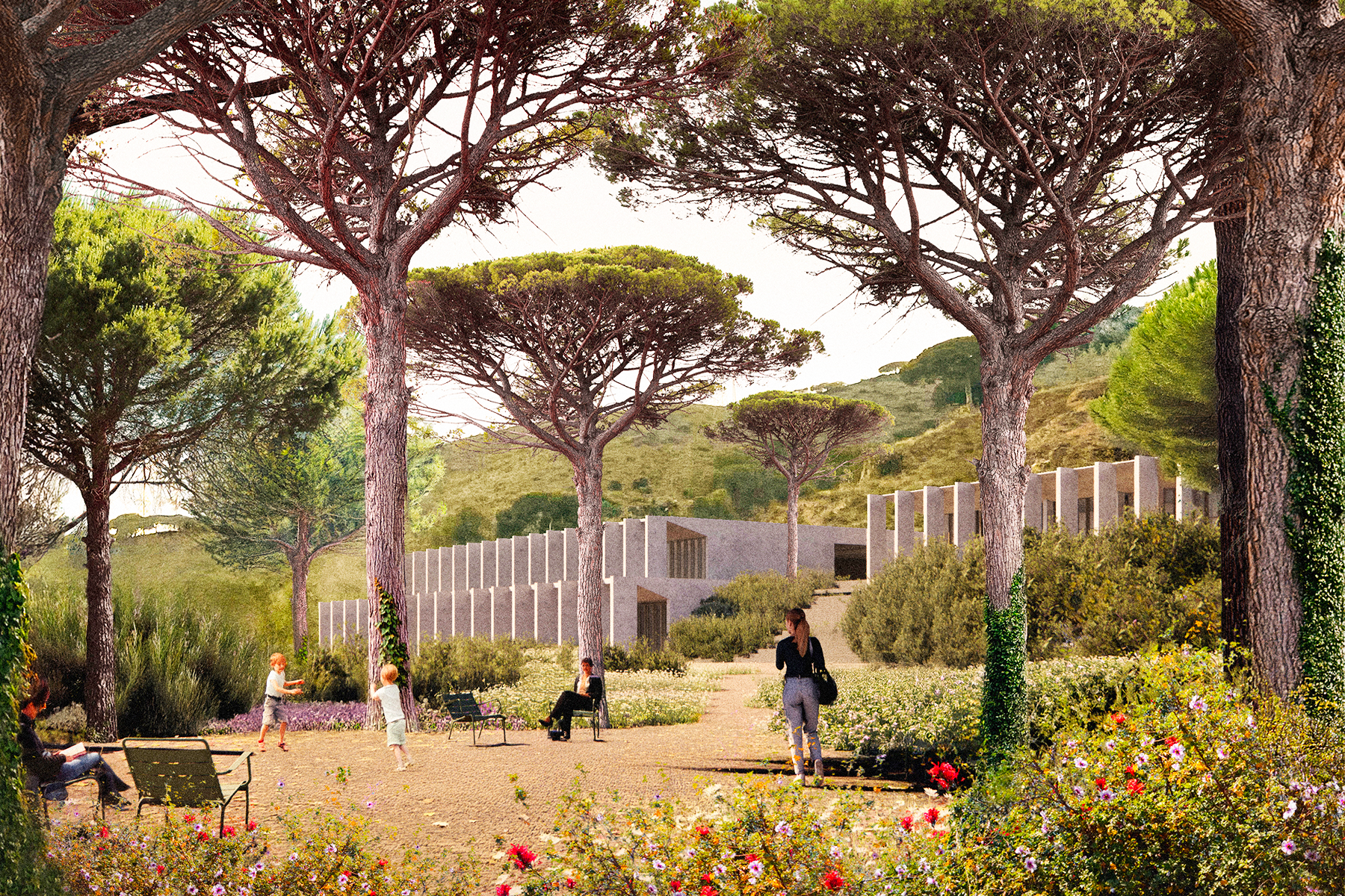 Our project re-sources through nature, heritage and cooperation. It regenerates obsolete industrial heritage by linking it to productive landscapes, biodiversity and circular water and material systems. By reconnecting ecosystems, reactivating social uses and reusing existing structures, Es Sindicat becomes a regenerative project that produces ecological, cultural and social value over time.
