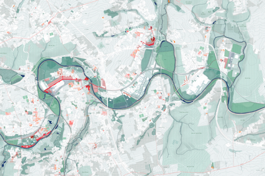 In the L202 corridor, the “site mutation” is already visible: increasing traffic and logistics pressure, more frequent climatic stresses and gradual changes in agricultural and settlement patterns. Our design questions met these mutations by treating them not as separate problems, but as different expressions of the same territorial condition. The analytical framework of solid / fluid / biotic allowed us to translate traffic growth into questions of soil sealing and safety, climate risks into hydrological continuity and storage capacity, and land-use change into the need for robust ecological corridors.