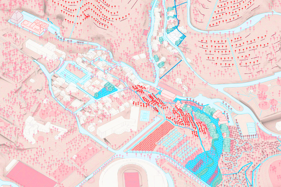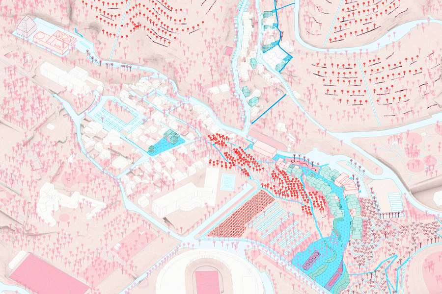 The area faces a complex set of environmental and human-induced challenges, including climate change risks, poor integration into metropolitan planning and structurally unsafe buildings. Rather than viewing these conditions as peripheral liabilities, the project reimagines La Font del Gos as a living prototype for a new model of peri-urban regeneration where environmental systems, circular economies, and inclusive governance are woven into a coherent, multi-scalar strategy.