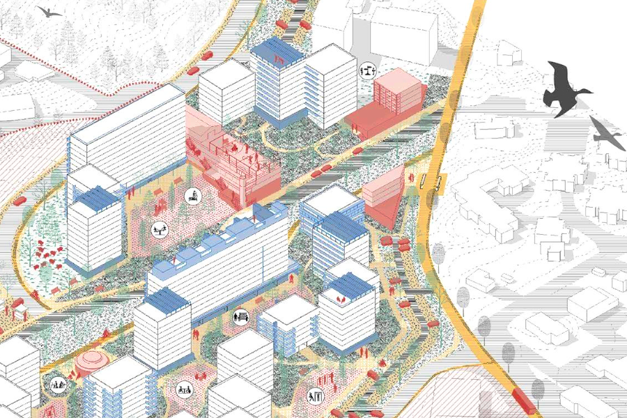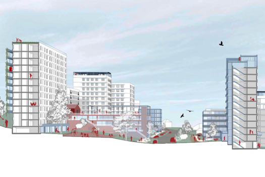 "Horizons liés responds to the adaptation challenges by offering the residents tools for pooling, empowerment and welcoming at the scale of home, blocks of buildings and urban integration. Regeneration of biodiversity through soils, sustainable mobility development, local low-carbon materials and integration of bioclimatic devices strengthen social integration of an ecological regenerative project."