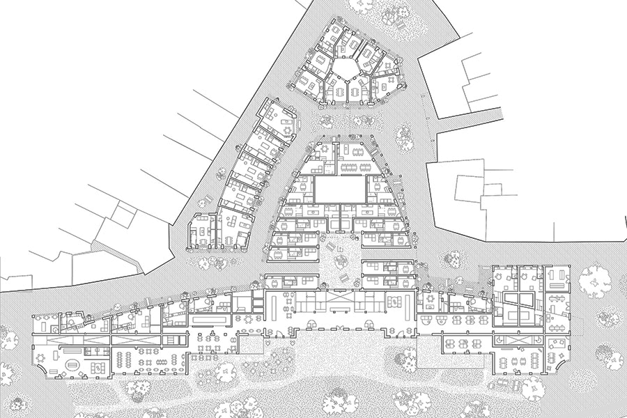 "Our submission ‘Capriccio: Beyond the Analogue’ proposes a design method that works on fragments rather than conceptual abstractions, leaving room for the complexity and unpredictability of different values and perspectives, so that different ways of resourcing can come together: the existing building from 2001, the existing social structures while at the same time improving the urban situation."