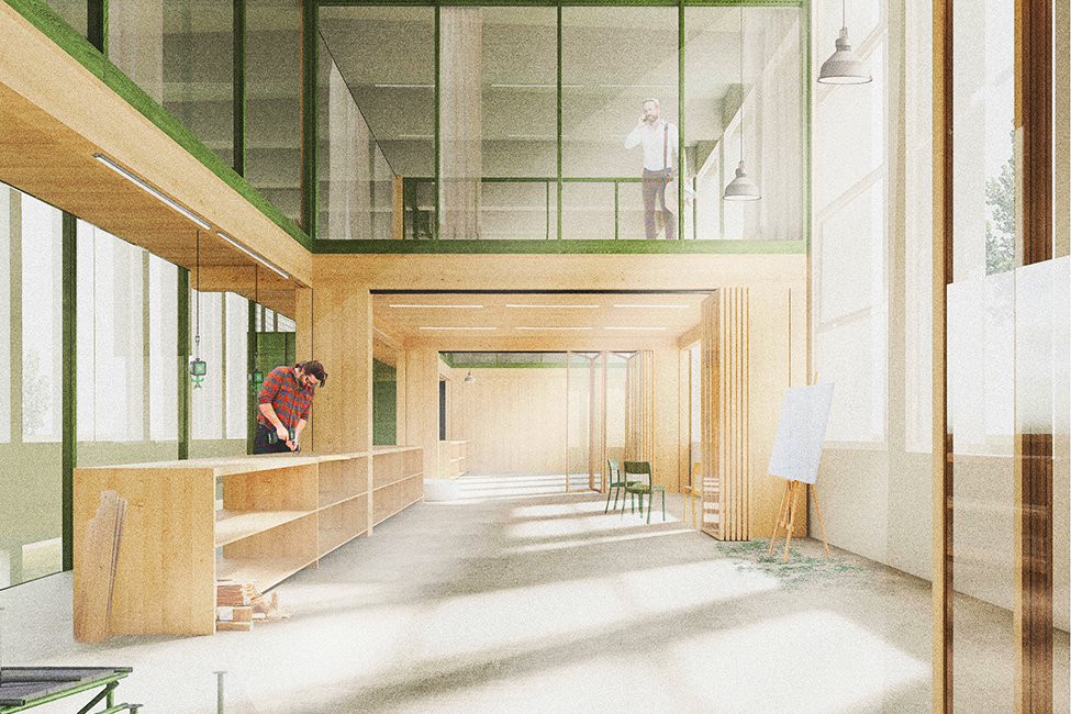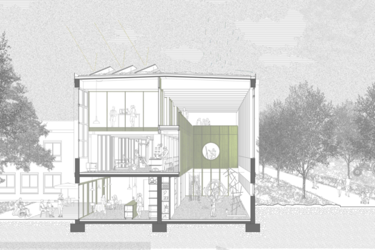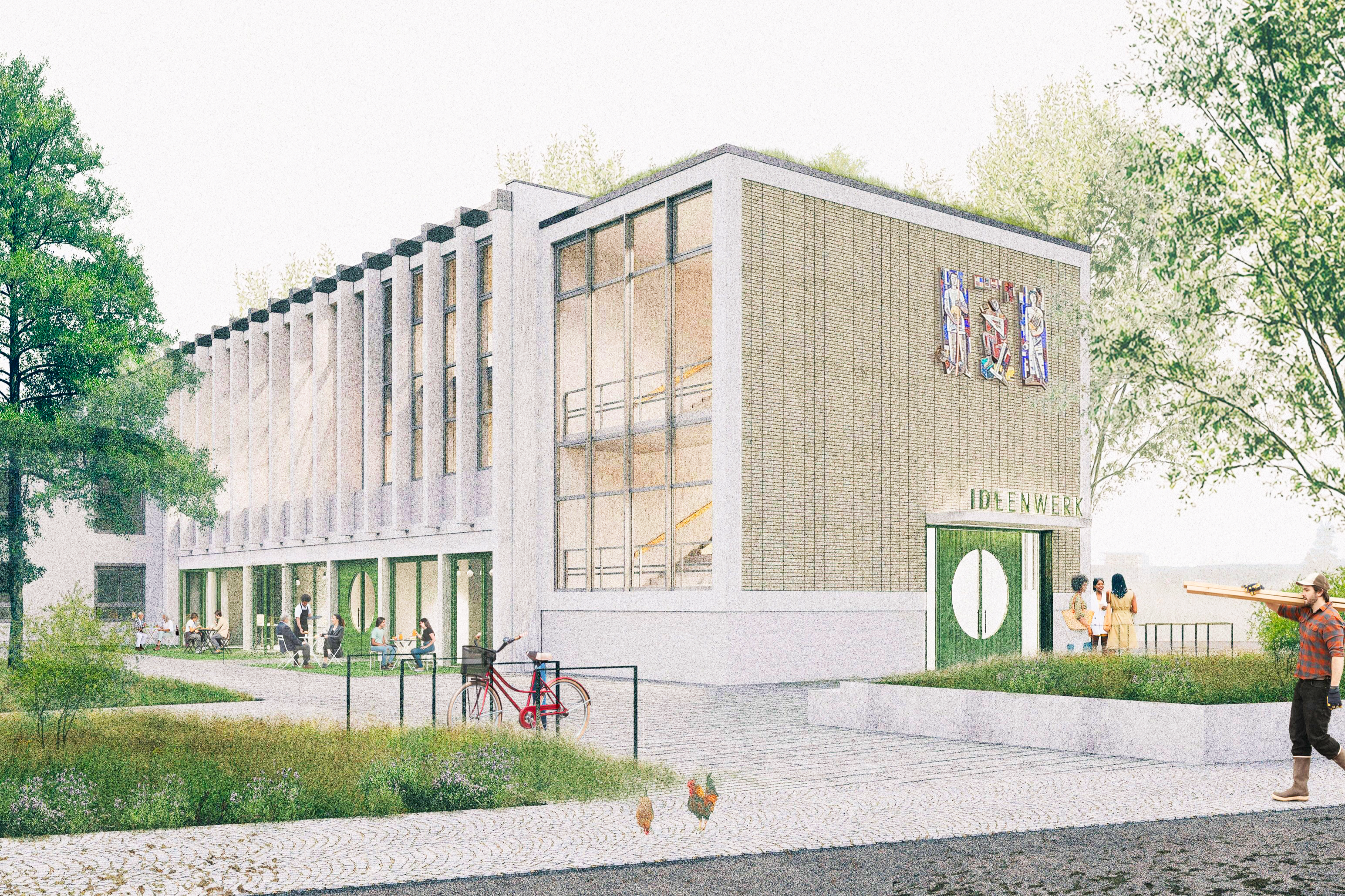 "Our project defines the central challenges under the guiding principle of “re-sourcing” by reactivating existing spatial, material, and social resources. By transforming the vacant festival hall into an open, multifunctional space for ideas, new social dynamics emerge, while the careful handling of the existing building fabric and the reuse of structural elements enable ecological resource conservation."