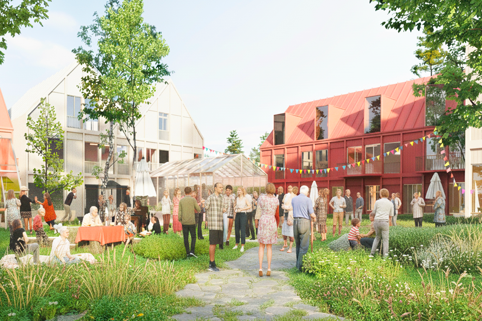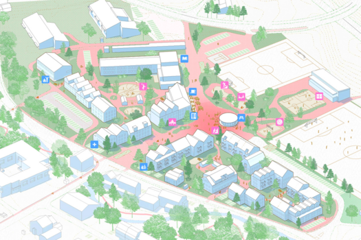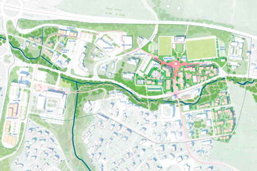 "Our vision for Frøystad interprets “Re-sourcing” as a healing process for the town of Roa. The site is reimagined as a vital link between urban life and landscape, creating a continuous corridor between nature and the built environment. Organized around public courtyards and a civic center, the neighborhood prioritizes human interaction and social inclusion over vehicular movement. Developed in phases, it can adapt to changing needs and stakeholder input, becoming a resilient model for future growth and the long-term regeneration of Roa’s civic and ecological heart."