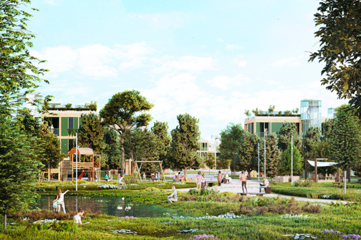 "For us, “Re-sourcing” means taking advantage the potential of the site and working within the existing conditions. The Common Green activates the soil, vegetation, water dynamics, and social proximity as key urban resources. Nature is understood as infrastructure, structuring public space, mobility, and housing."