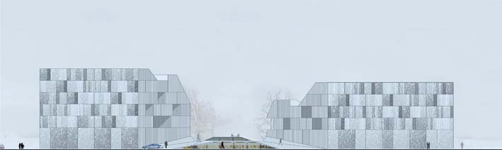 In the 1800s, for reasons of public safety, downtown Pori was configured into an urban grid. The city is made up of mostly underdeveloped blocks, whose one common element is the overwhelming amount of negative space found between the loosely scattered buildings built into their peripheries. The proposal works with the existing block typology to create a positive condition that could be replicable throughout the city.