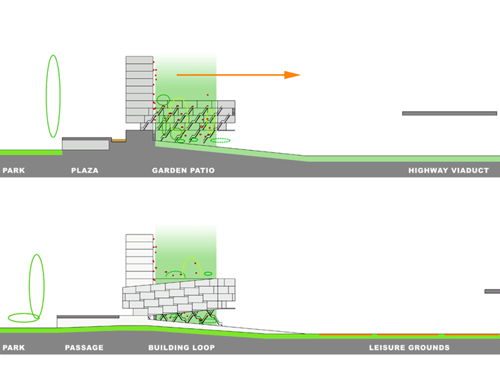 DotsAndLoops transformative description of the site conditions results in a public porosity that firmly structures the new edge condition.
