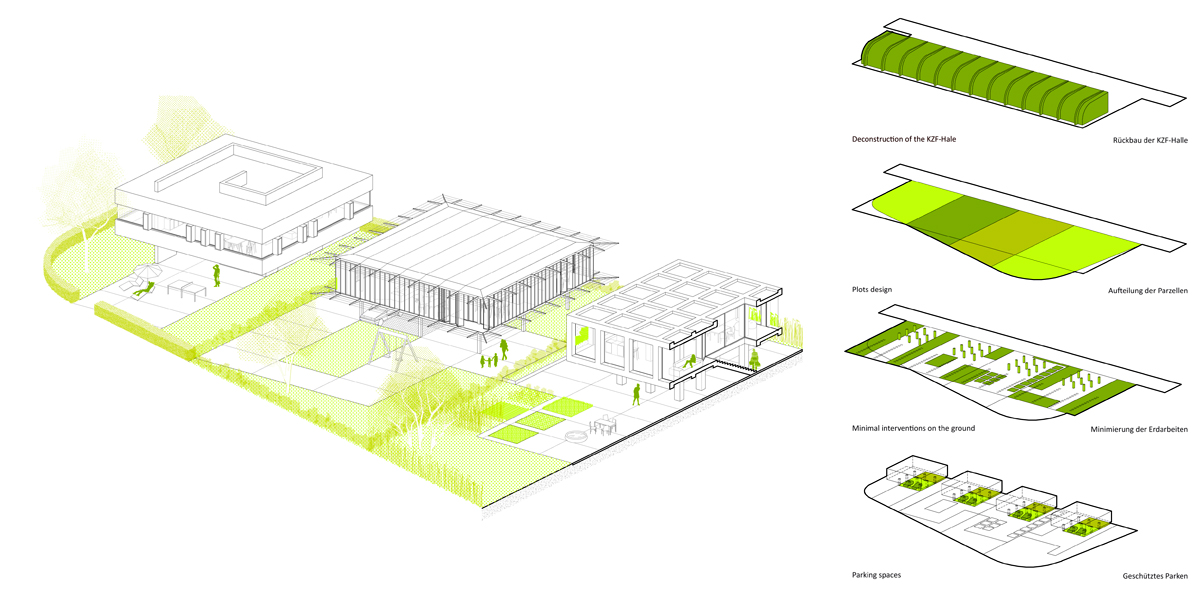 The Alfred Delp barracks form a separate, landlocked and autonomous entity. The aim is to connect this area to the city and to generate a new urban fragment. Kept Soil answers this question of adaptability with a respectful, sensitive and ambitious approach to the site. The project establishes a series of reasoned initiatives to offer public spaces with high spatial qualities and to create an overall density appropriate to the district.