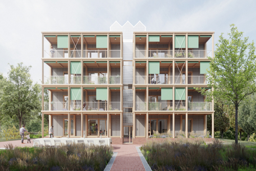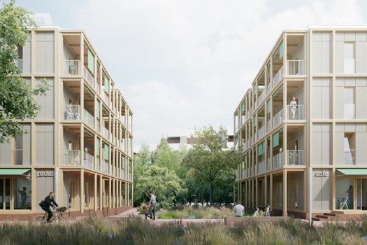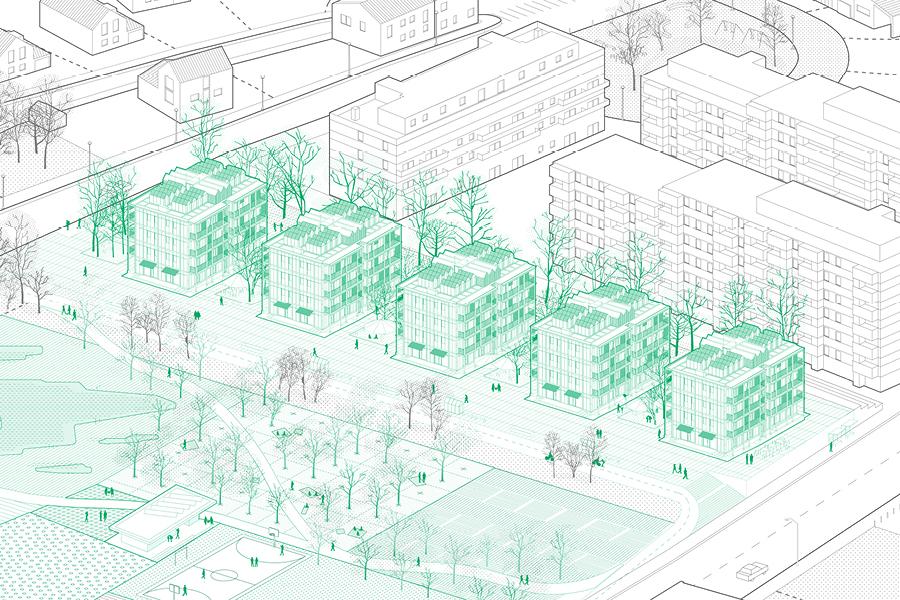 "“Care Blanket” re-sources through three dimensions: nature (bio-sourced cork-timber envelope, green corridors, pollinator rooftops), social dynamics (community co-design workshops, shared ground floor infrastructure), and new materiality (dry-mounted modular system following circular economy - no adhesives, fully disassemblable). It's regenerative: transforming 1960s obsolescence into renewed urban milieu while improving thermal performance and quality of life."
