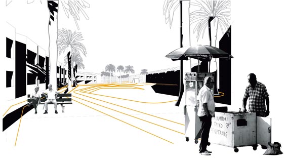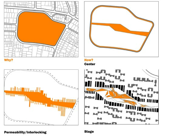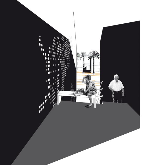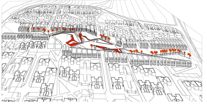 Ce projet envisage un nouveau lieu public linéaire visant à ouvrir le quartier. Il joue sur le contraste entre ce grand espace central et les étroites rues du tissu urbain.